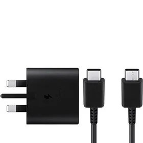 شارژر دیواری سامسونگ برای شارژ سریع تا 25W را برای دستگاه های سازگار فراهم می کند. برای نتیجه بهینه از شارژر دیواری با کابل شارژ رسمی سامسونگ Type C به Type C استفاده کنید. که بایستی به طور جداگانه تهیه شود.